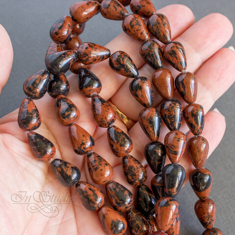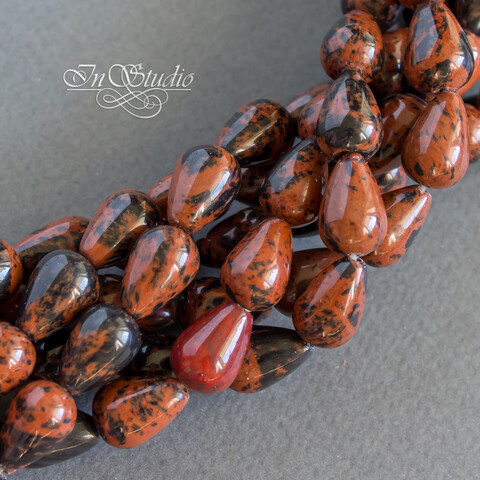 Обсидиан Махагоновый 14 х10 мм бусины капли