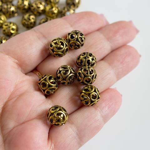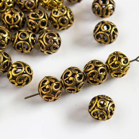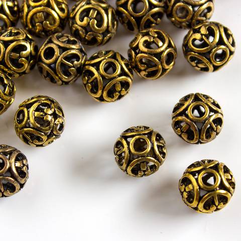 Бусина ажурная декоративная 11 мм античное золото