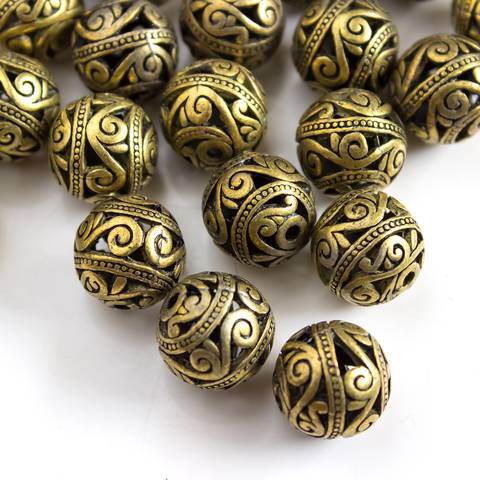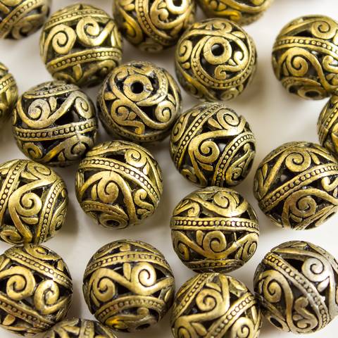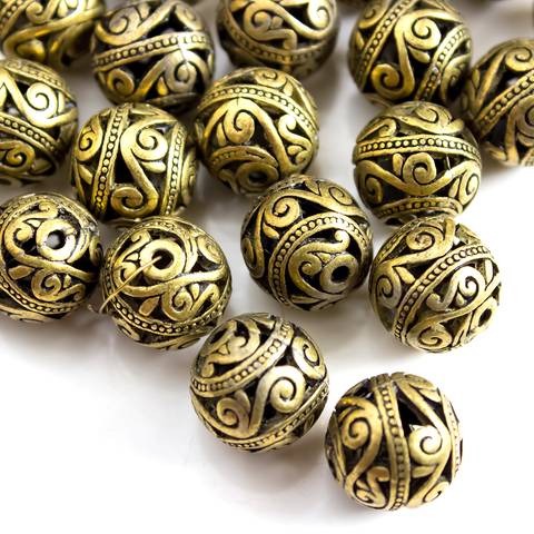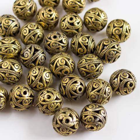 Бусина ажурная из металла 14,5 мм античная бронза шар