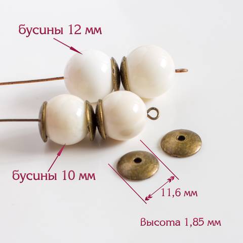 Шапочка плоская 12 мм для бусин античная бронза Ш342