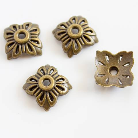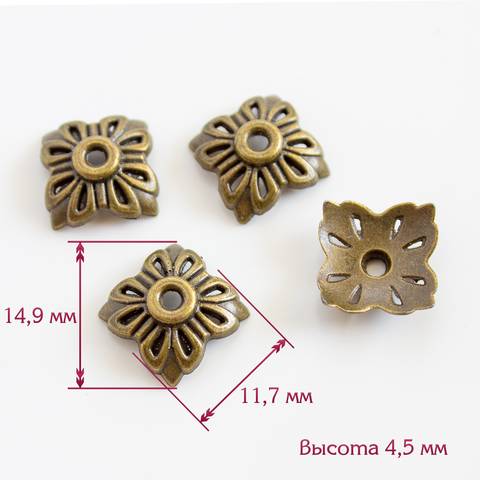 Шапочка плоская для бусин - колпачок, обниматель цвета античная бронза.