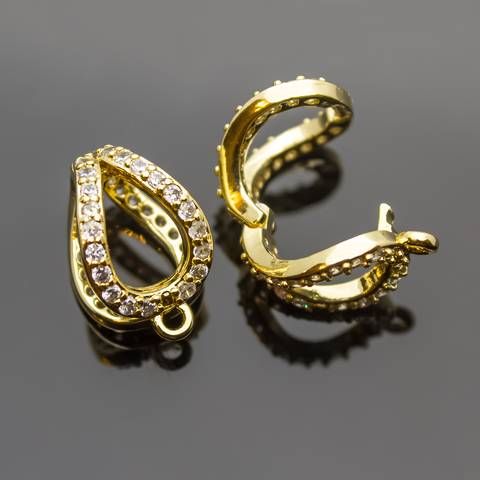 Замок бейл с фианитами 14х11 мм позолота карабин Южная Корея