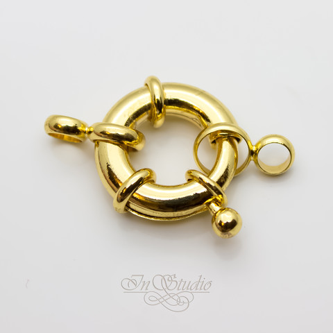 Замок шпрингельный 15 мм карабин-шпрингель позолота по латуни. Замок "штурвал"