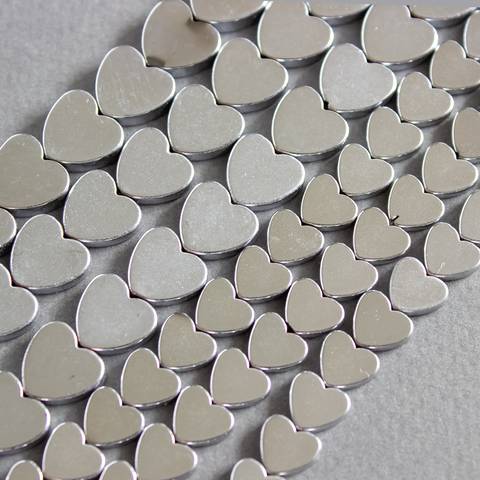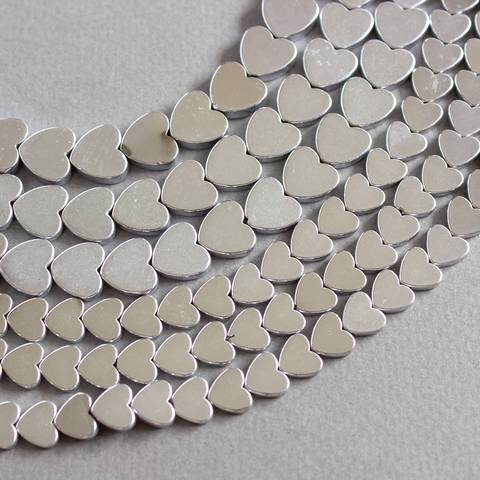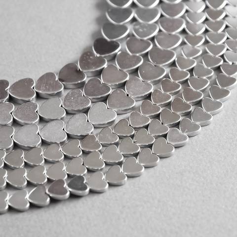 Гематит серебристый сердечки плоские бусины 8 и 11 мм