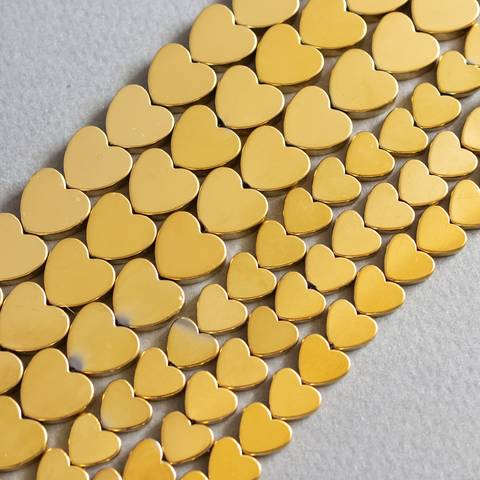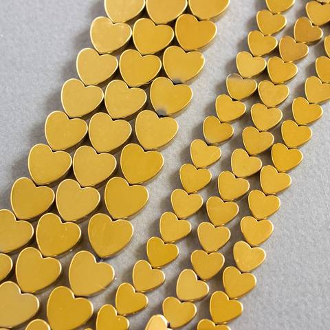 Гематит сердечки золотые плоские бусины 8 и 11 мм
