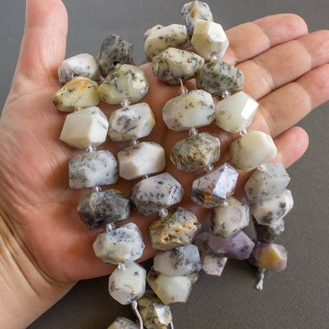 Опал дендритовый 20 мм крупные бусины фриформ с гранями