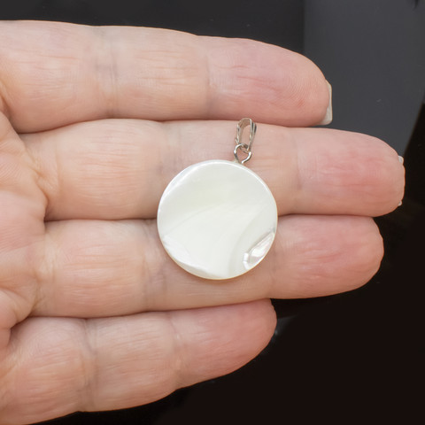 Подвеска из белого перламутра 20 мм круглая плоская родий