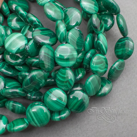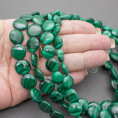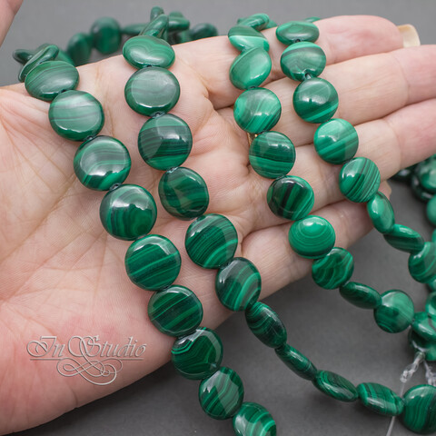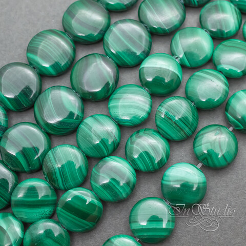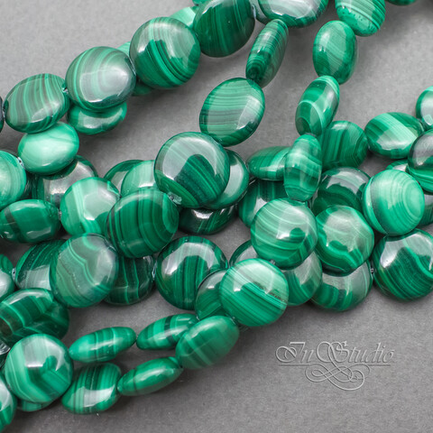 Плоские круглые бусины из НАТУРАЛЬНОГО природного малахита.