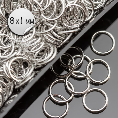Колечки 8х0,8 мм соединительные разъемные для изготовления бижутерии.