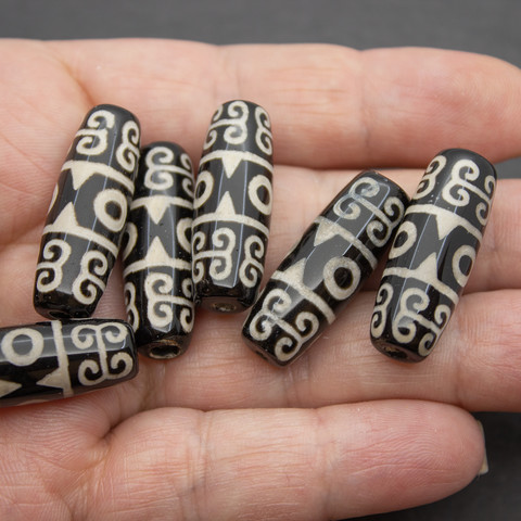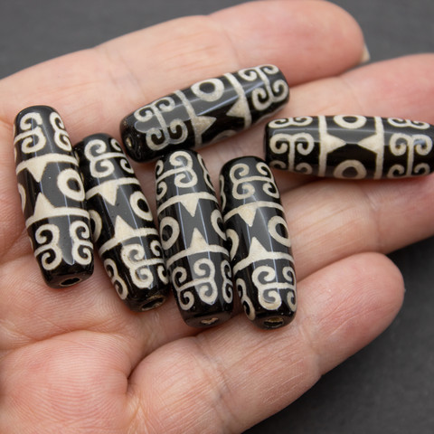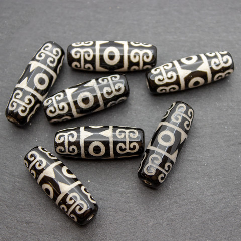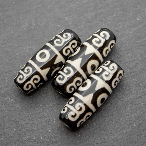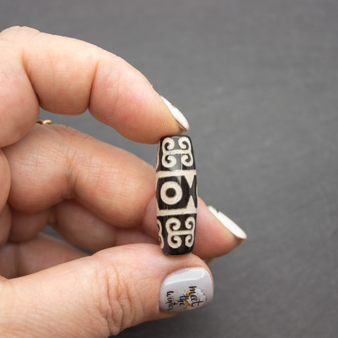 Бусина агата Дзи Облака Удачи и 3 глаза черно белая