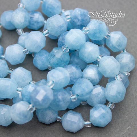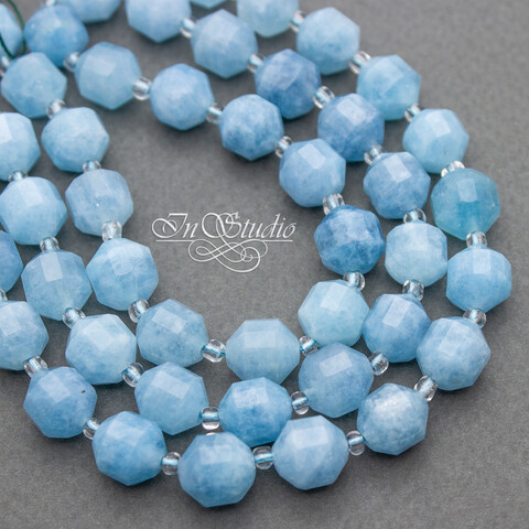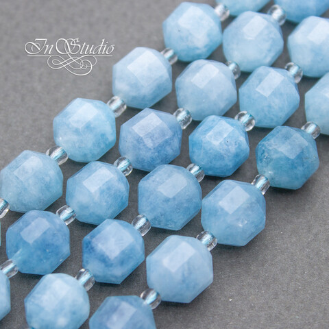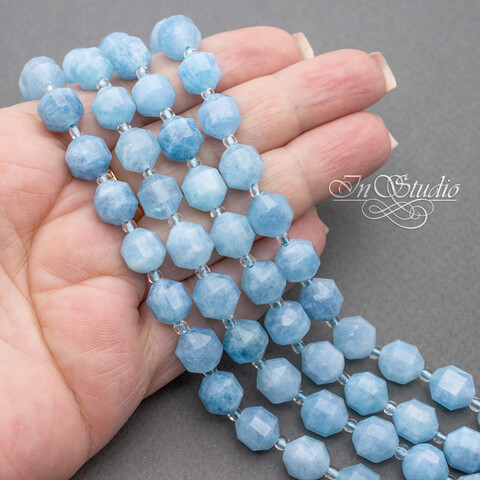 Аквамарин натуральный 10 мм многогранные бусины