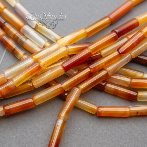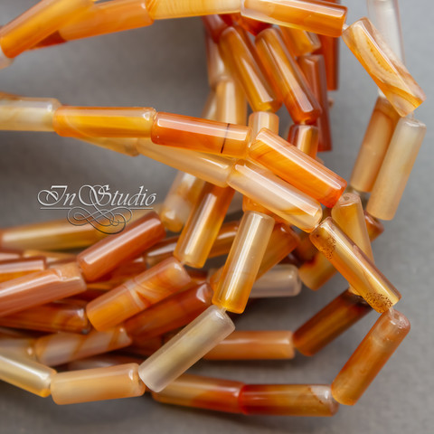 Сардоникс природный 13х4 мм бусины трубочки цилиндры
