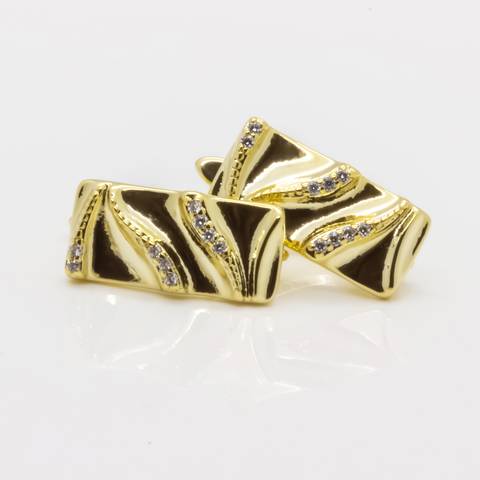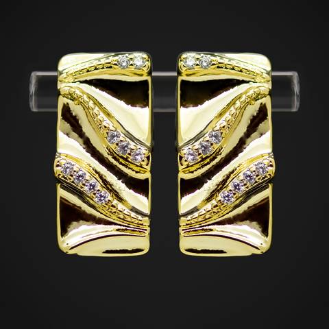 Выполнены в виде мятых прямоугольников (эффект жатки) и украшены фианитами (цирконами).