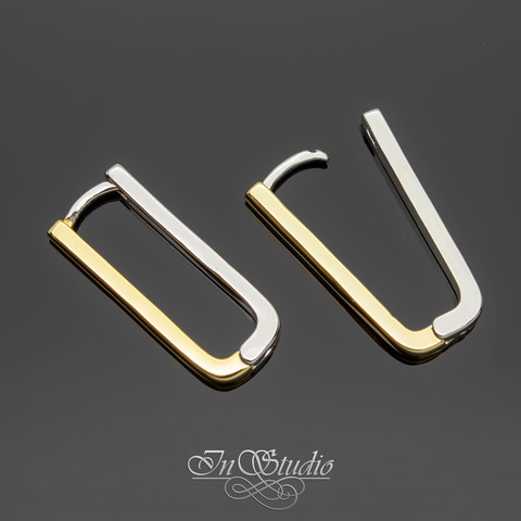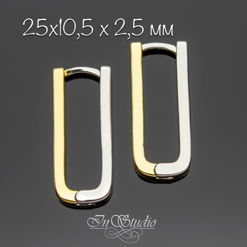 Швензы прямоугольные КОНГО биколор двухцветные родий + позолота 25х10х2,5 мм.