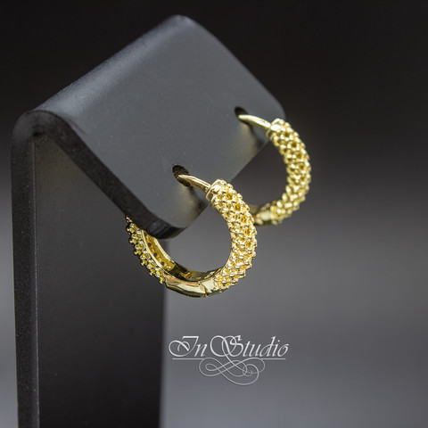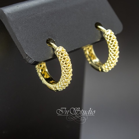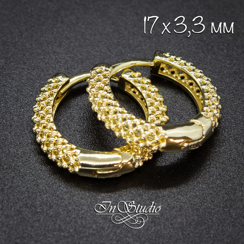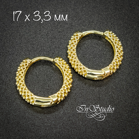 Швензы конго 17х3,3 мм Ванесса фактурные кольца серьги-сеточка позолоченные.