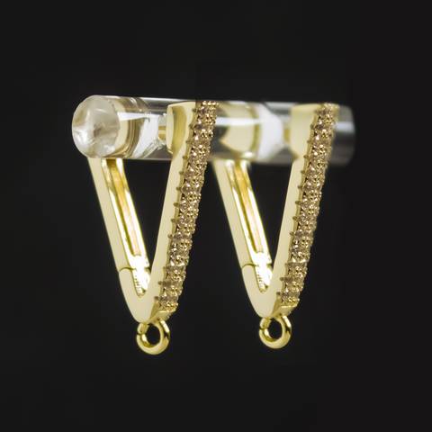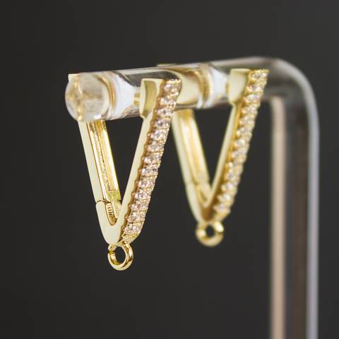 Выполнены в виде треугольников, по типу буквы V и украшены фианитами (цирконами).