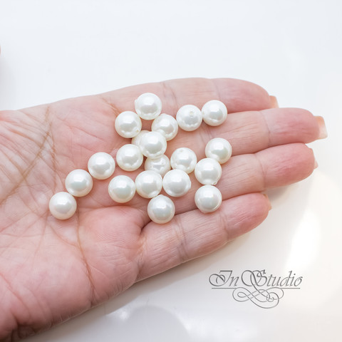 Жемчуг Shell pearl под вклейку 10 мм белый полупросверленный шар