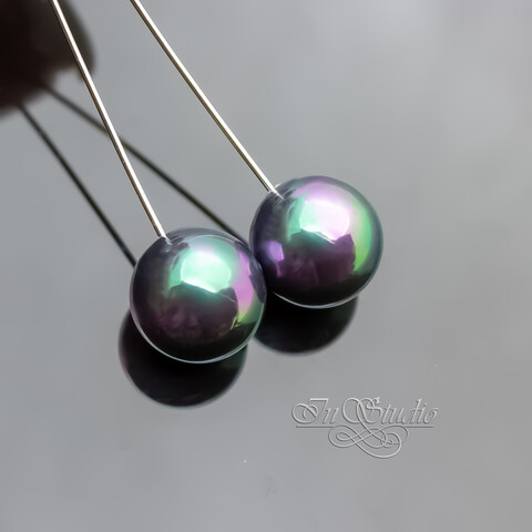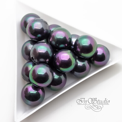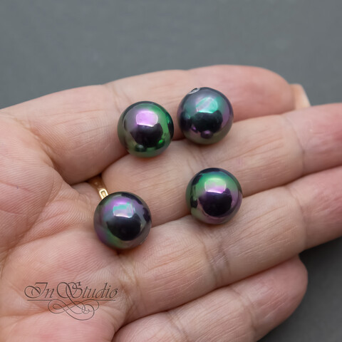 Жемчуг Shell pearl под вклейку 12 мм черный павлин полупросверленный шар