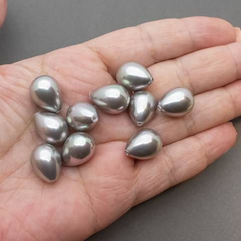 Жемчуг Shell pearl для вклейки 16 мм серебристые полупросверленные капельки