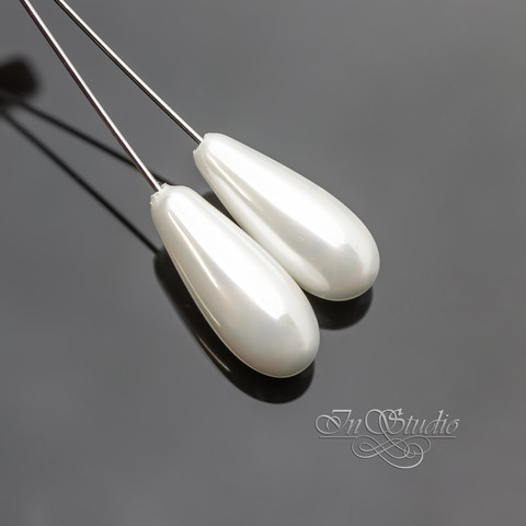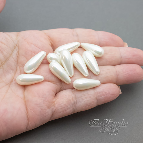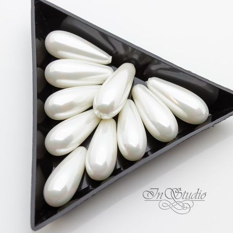 Жемчуг Shell pearl для вклейки 20 мм белые полупросверленные бусины капли