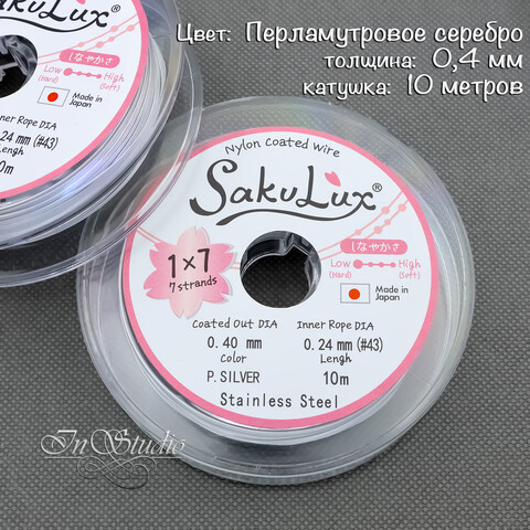 Ювелирный тросик ланка 0,4 мм SakuLux серебристый перламутровый семижильный