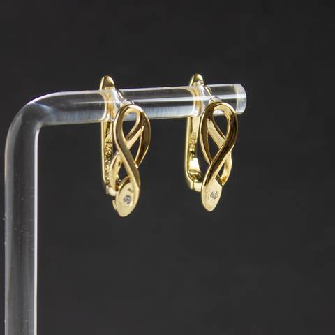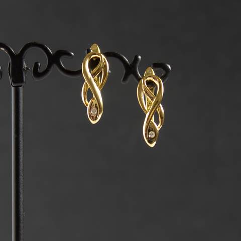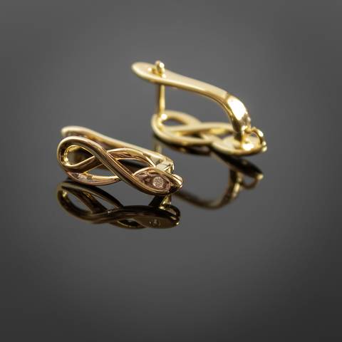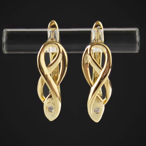Выполнены в виде переплетающихся узоров и украшены фианитом (цирконом).