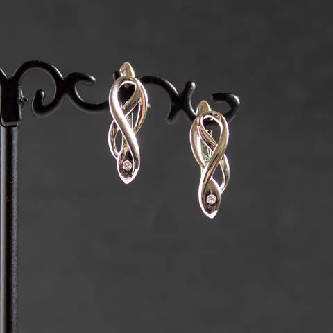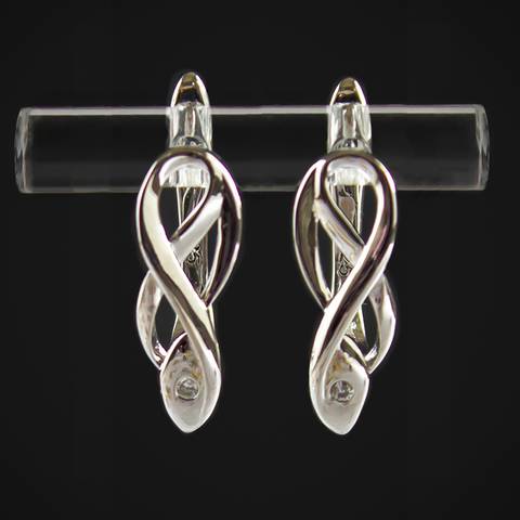Выполнены в виде переплетающихся узоров и украшены фианитом (цирконом).