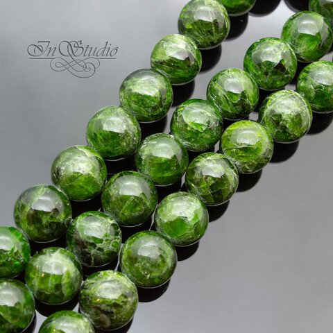 Хромдиопсид натуральный 12 мм круглые бусины диопсида
