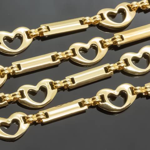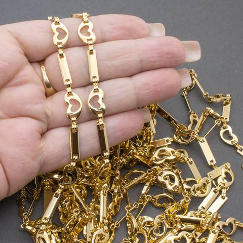 В 10 см цепочки - 3 сердечка и 3 планочки.