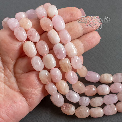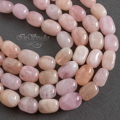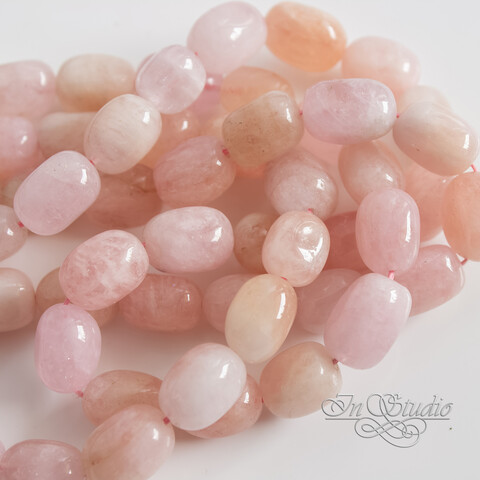 Морганит природный 12-15 мм бусины галтовка фриформ