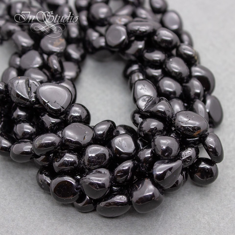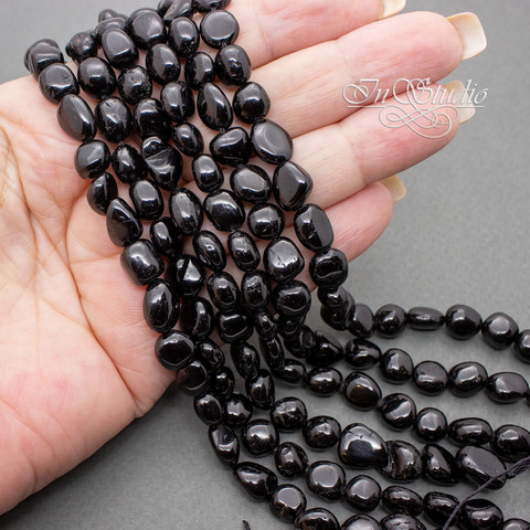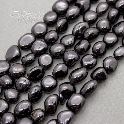 Шерл натуральный НИТЬ бусины фриформ из черного турмалина