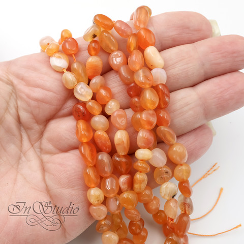 Сардоникс натуральный НИТЬ бусины фриформ галтовка