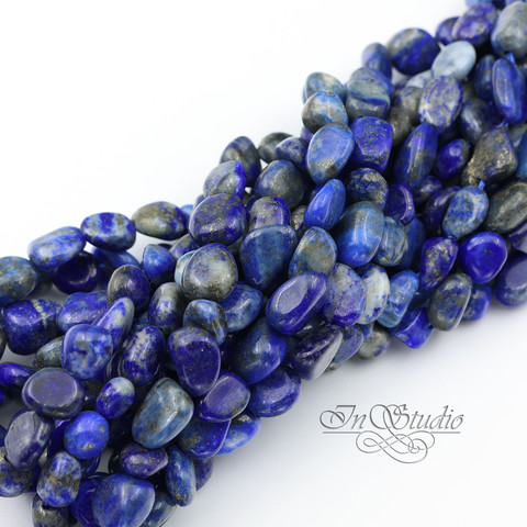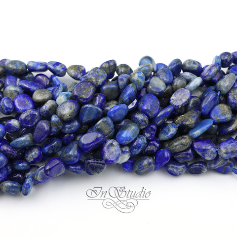 Лазурит натуральный НИТЬ бусины фриформ галтовка