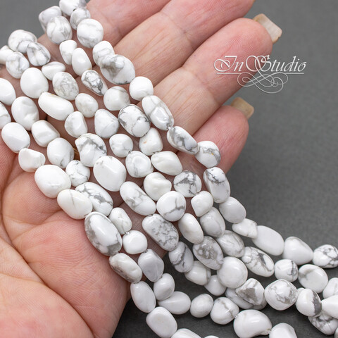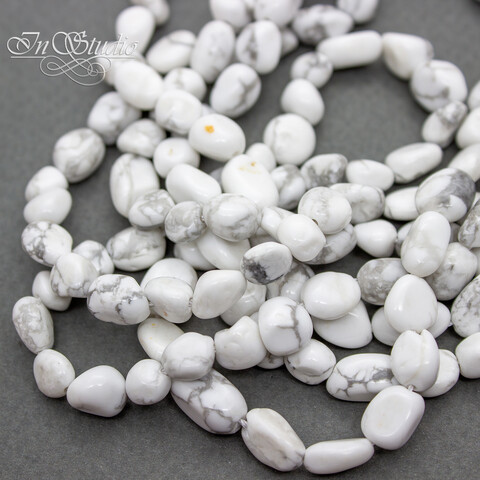 Кахолонг натуральный НИТЬ бусины фриформ галтовка