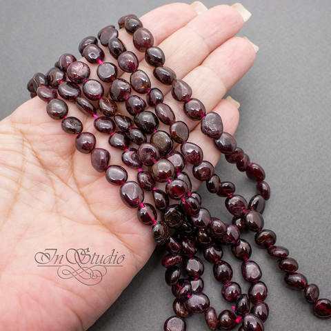 Бусины из натурального граната альмандина.