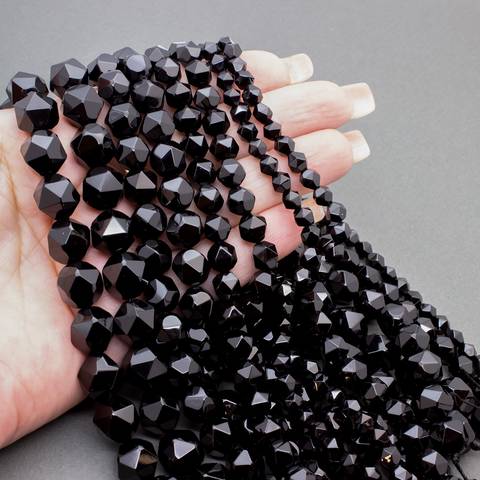 Агат черный многогранник 5 8 10 12 мм бусины с огранкой
