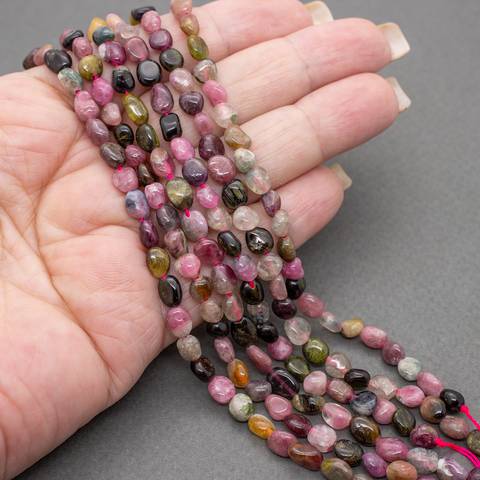 Турмалин натуральный НИТЬ бусины фриформ галтовка