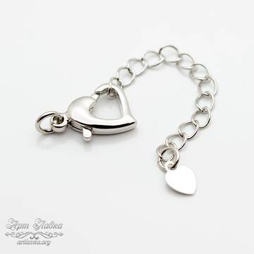 Замок карабин Сердце 12х9 мм родированный с удлиняющей цепочкой