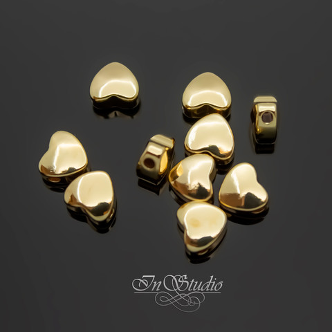 Бусины спейсеры 6 мм разделители СЕРДЦЕ позолота