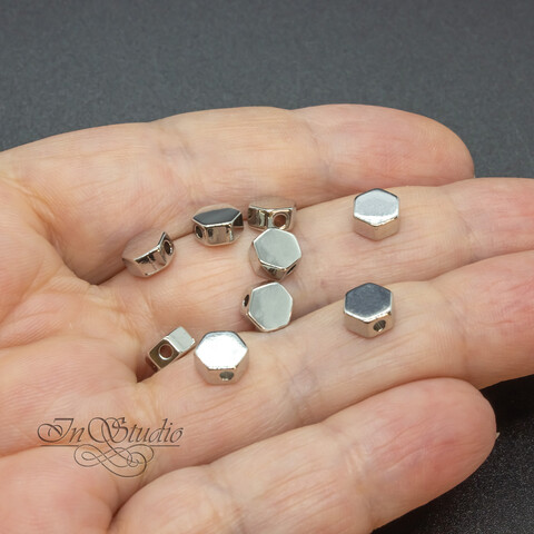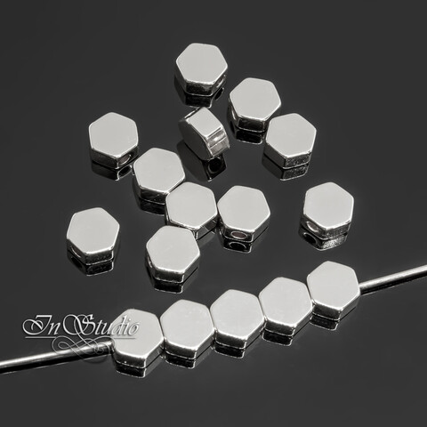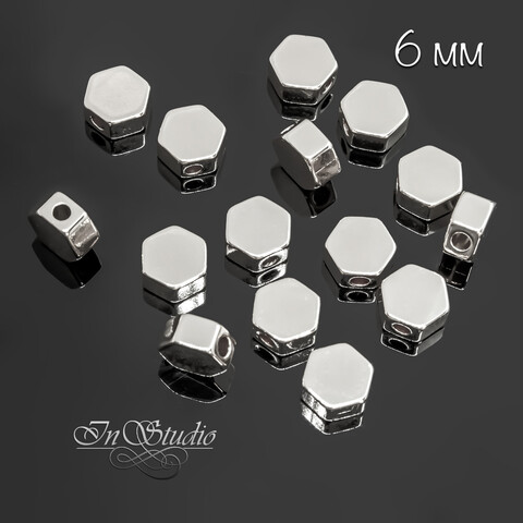 Бусины спейсеры разделители 6 мм шестигранник родий