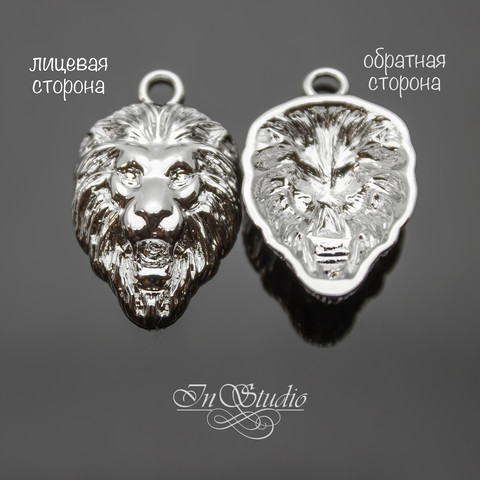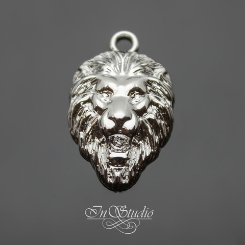 Подвеска в виде головы льва - латунь с родиевым покрытием.