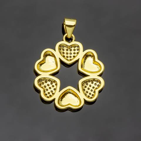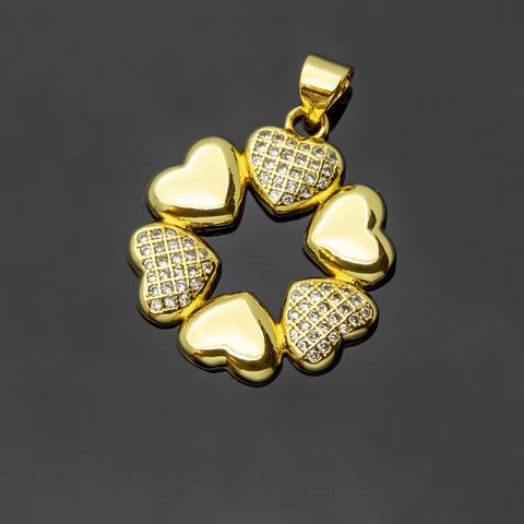 Подвеска кулон венок из сердечек 20 мм фианиты позолота