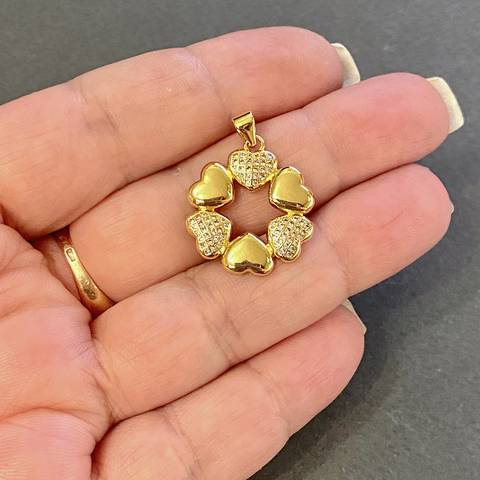 Кулон выполнен в виде сердец расположенных по кругу, по типу венка.