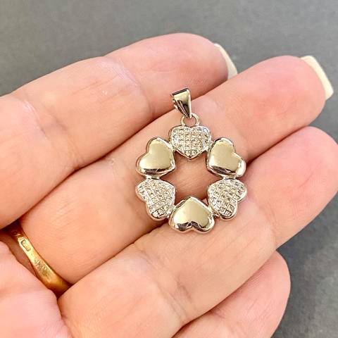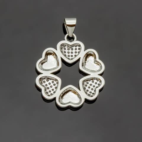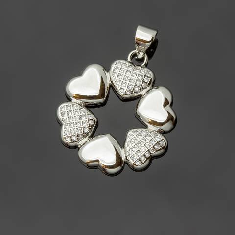Кулон выполнен в виде сердец расположенных по кругу, по типу венка.