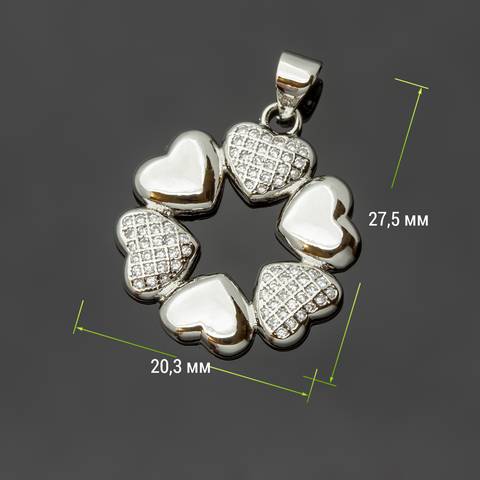 Подвеска кулон венок из сердечек 20 мм фианиты родий