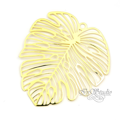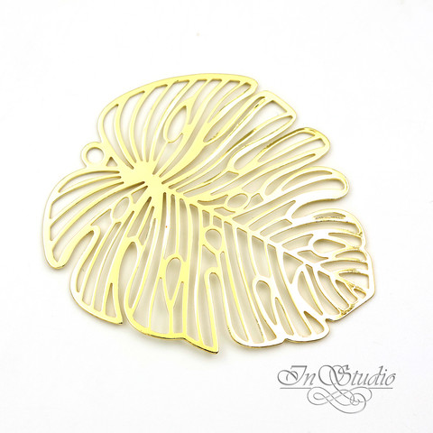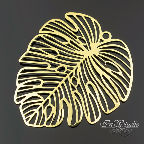 Подвеска Лист Монстеры 50х45 мм коннектор позолота