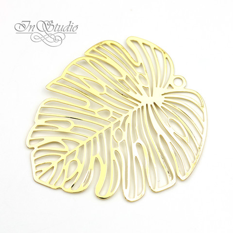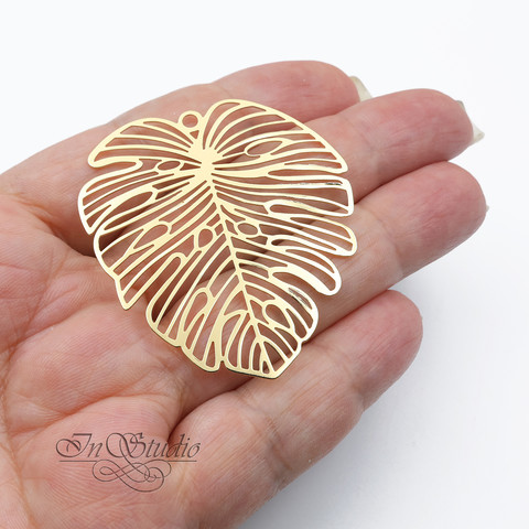 Крупная тонкая подвеска коннектор Лист Монстеры родиевое покрытие по латуни. Очень легкая - подходит для изготовления серег, колье.
