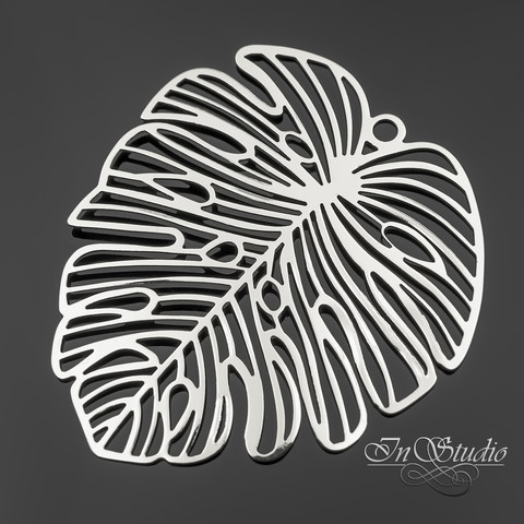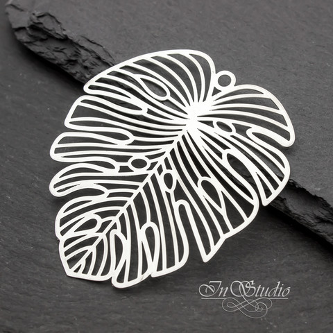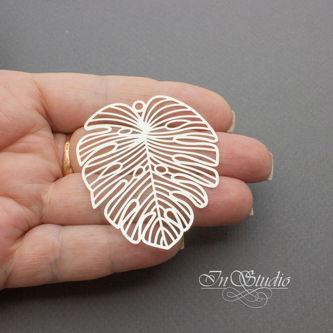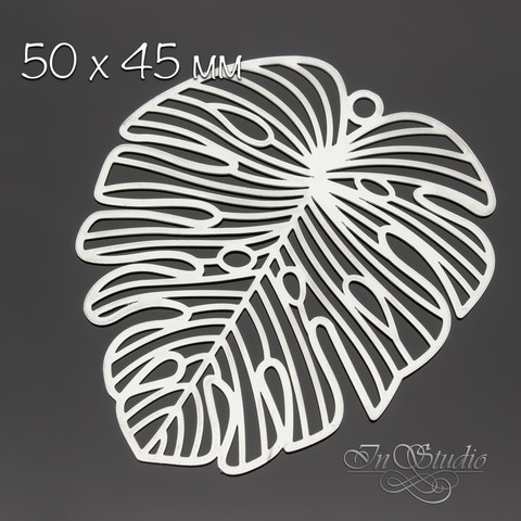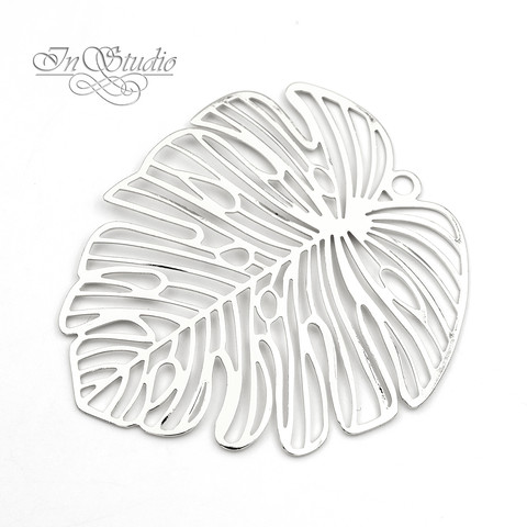 Крупная тонкая подвеска коннектор Лист Монстеры родиевое покрытие по латуни. Очень легкая - подходит для изготовления сережек, колье или как кулон на шею.