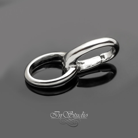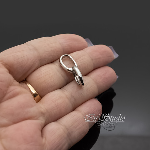 Замок двойной 25х9 мм карабин крупный родиевое покрытие.