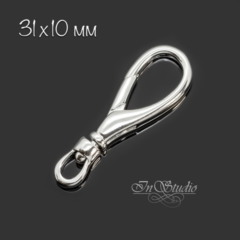 Крупный родированный замочек 31х10 мм лобстер, карабин.